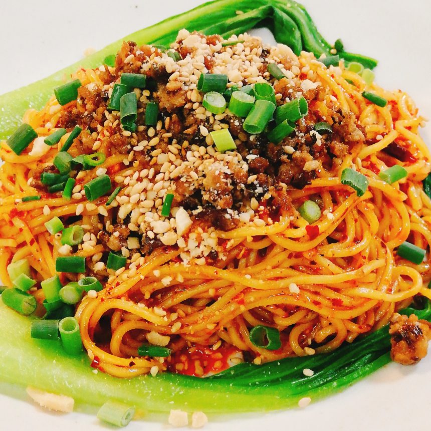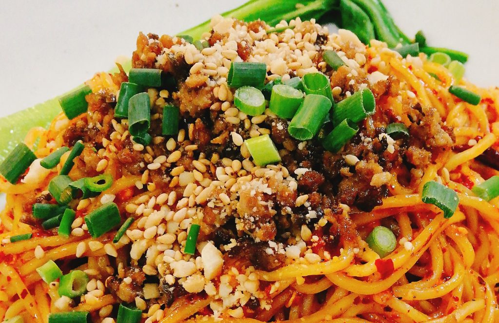 汁無坦々麺にはひき肉とネギ、ナッツが入っていいます。