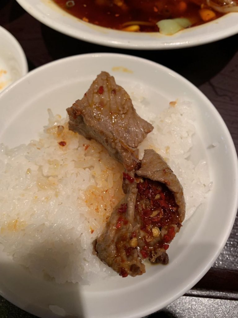 あとこの赤い油の中に並んでる牛肉、絶対旨いやつ!