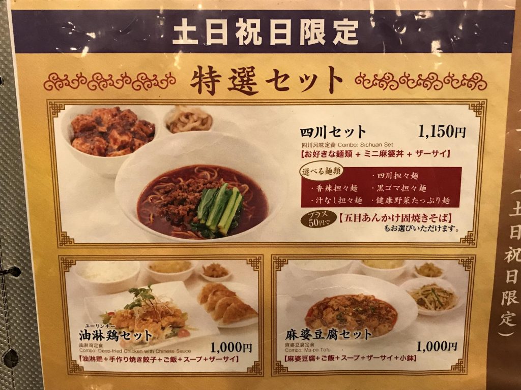 私は店員さんに土日祝日限定の特選セットである「四川セットの四川担々麺」をオーダーしました。