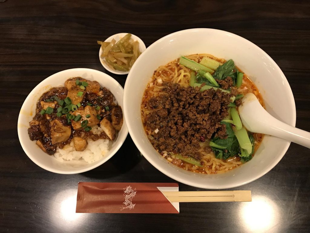 四川セットは四川担々麺と麻婆豆腐それぞれの辛さが来るタイミングや味の濃さの違いを楽しめます。