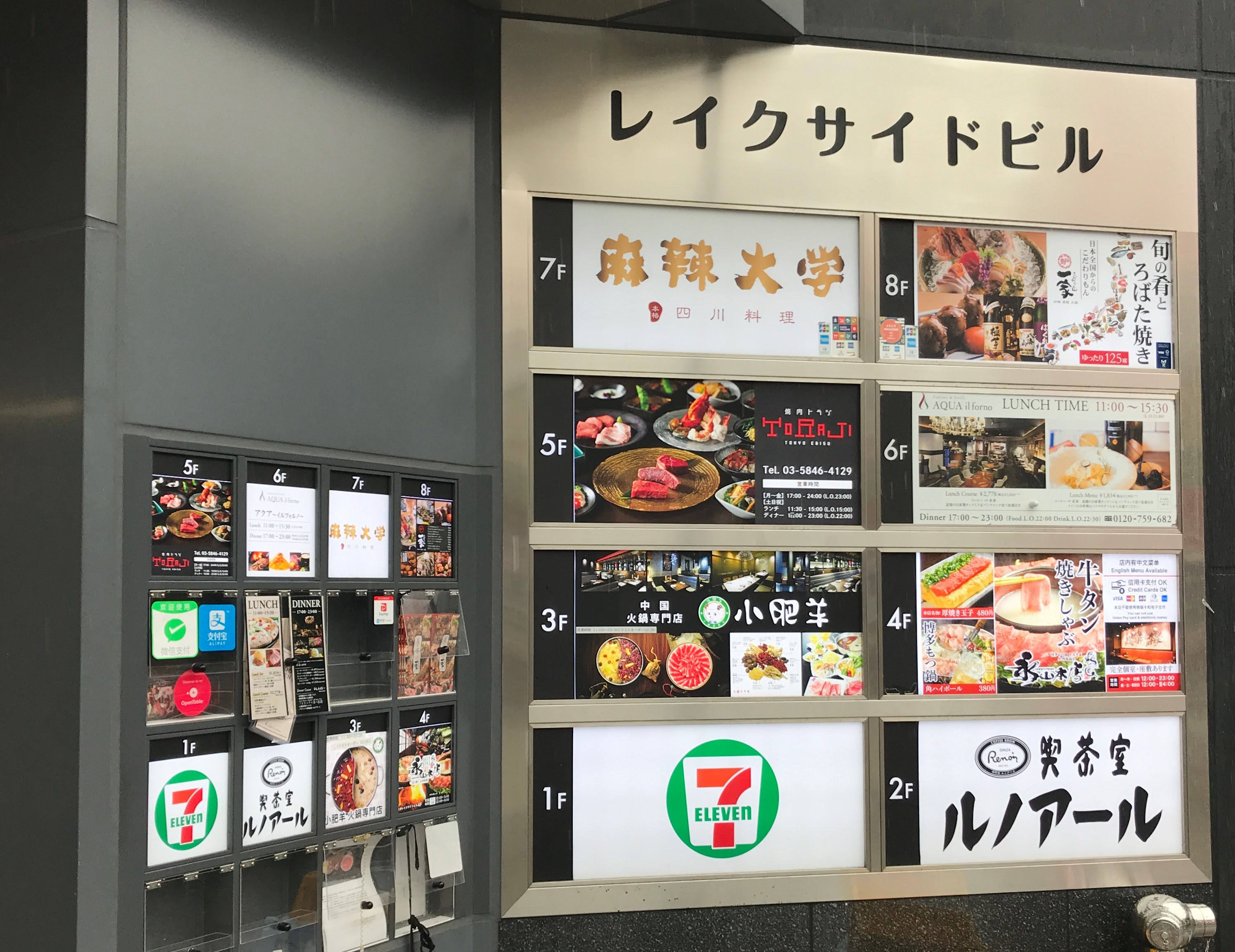 これが京成上野駅の「池の端口」から見た写真ですが、「麻辣大学 上野店」があるレイクサイドビルは、写真左端に見える、1Fがセブンイレブン、2階にルノアールのあるビルです。