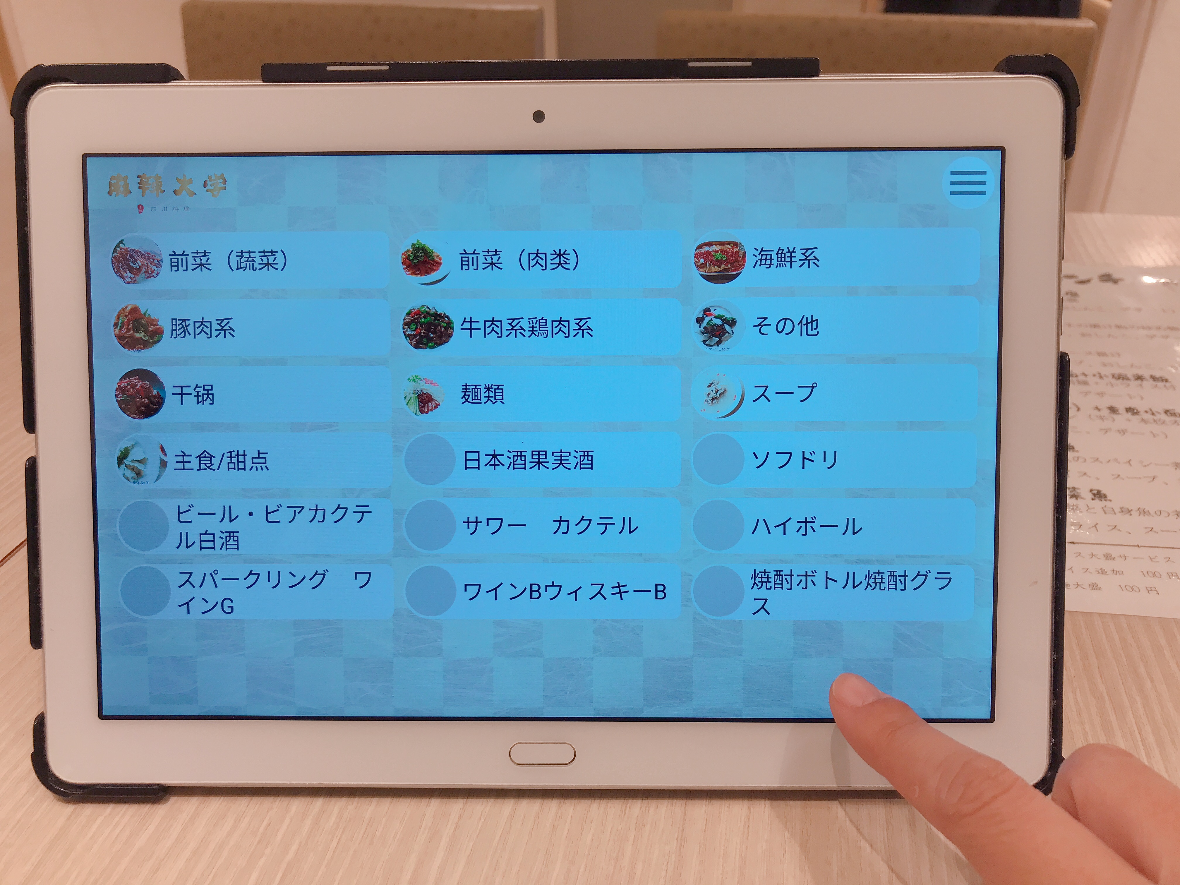 こちら一画面ですが、それぞれのカテゴリごとに10種類前後の料理が並んでいるので、メニュー全部だとかなりの品数があります。