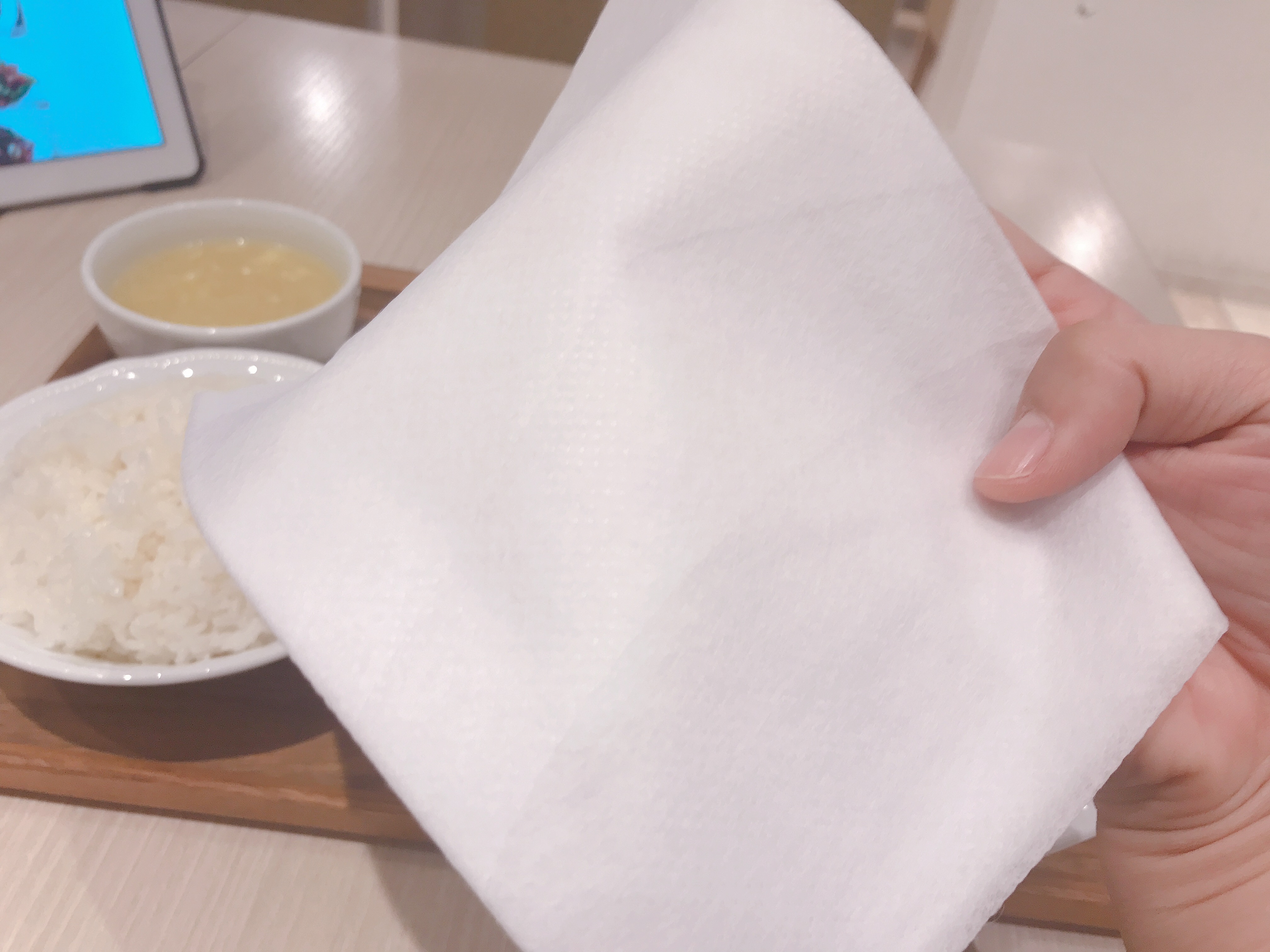 そうそう、はねても大丈夫なように、紙エプロンを持ってきてくれました。サービスも◎
