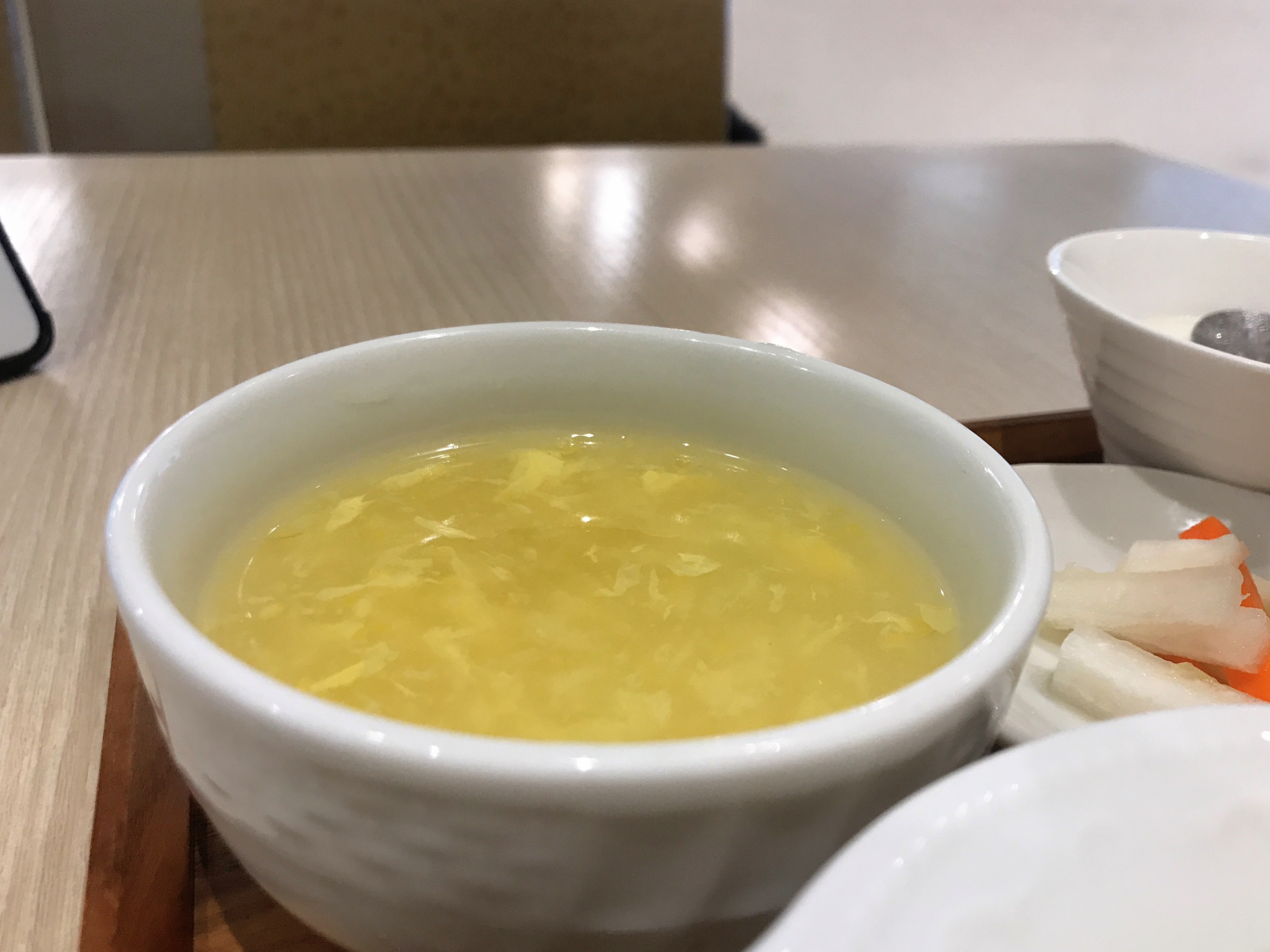 スープはかなりとろみのあるたまごスープ。なかなか冷めないので後で飲んでもいいかも。