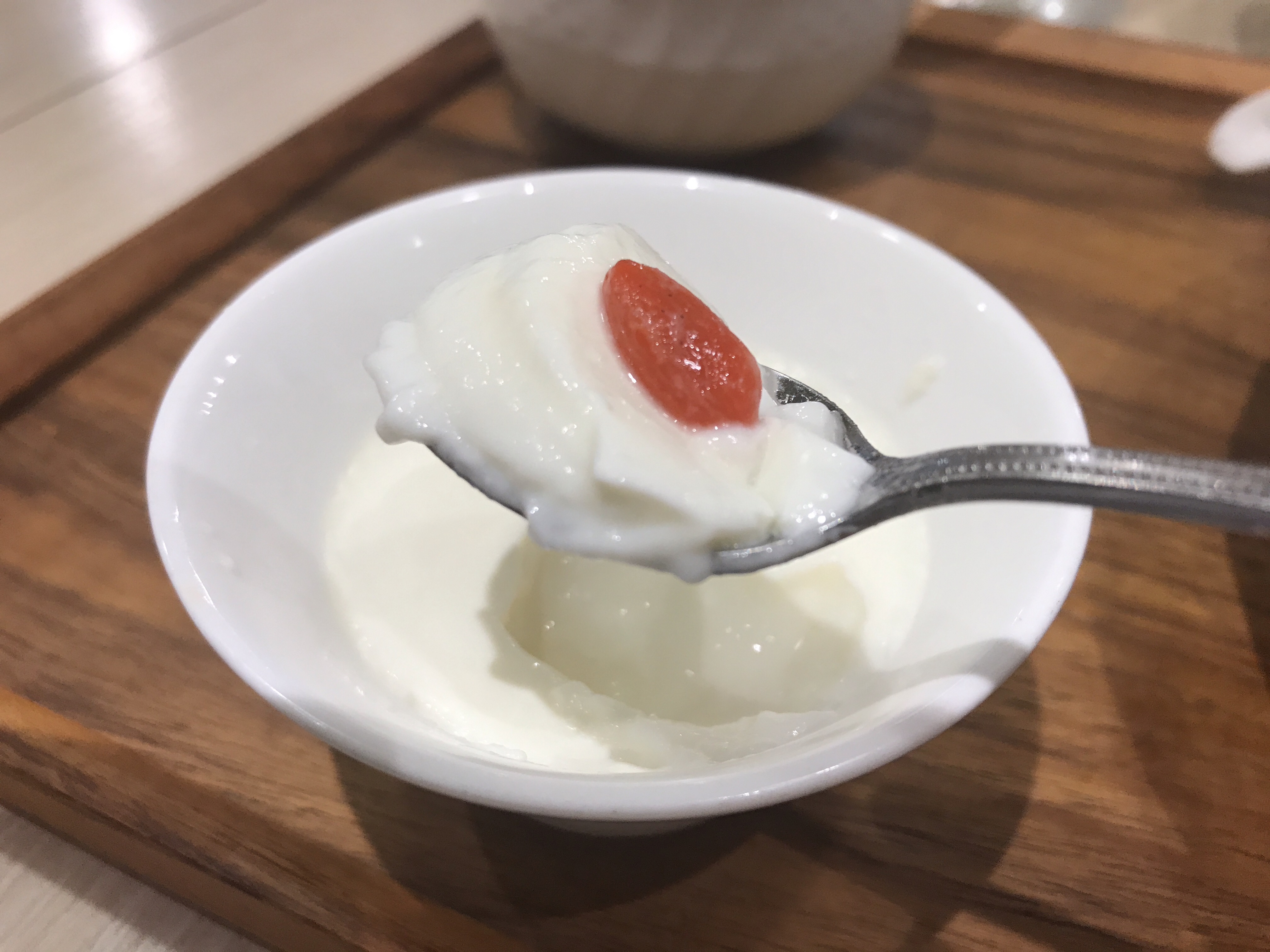 おなじみの杏仁豆腐。滑らかでミルクプリンみたいな感じ。