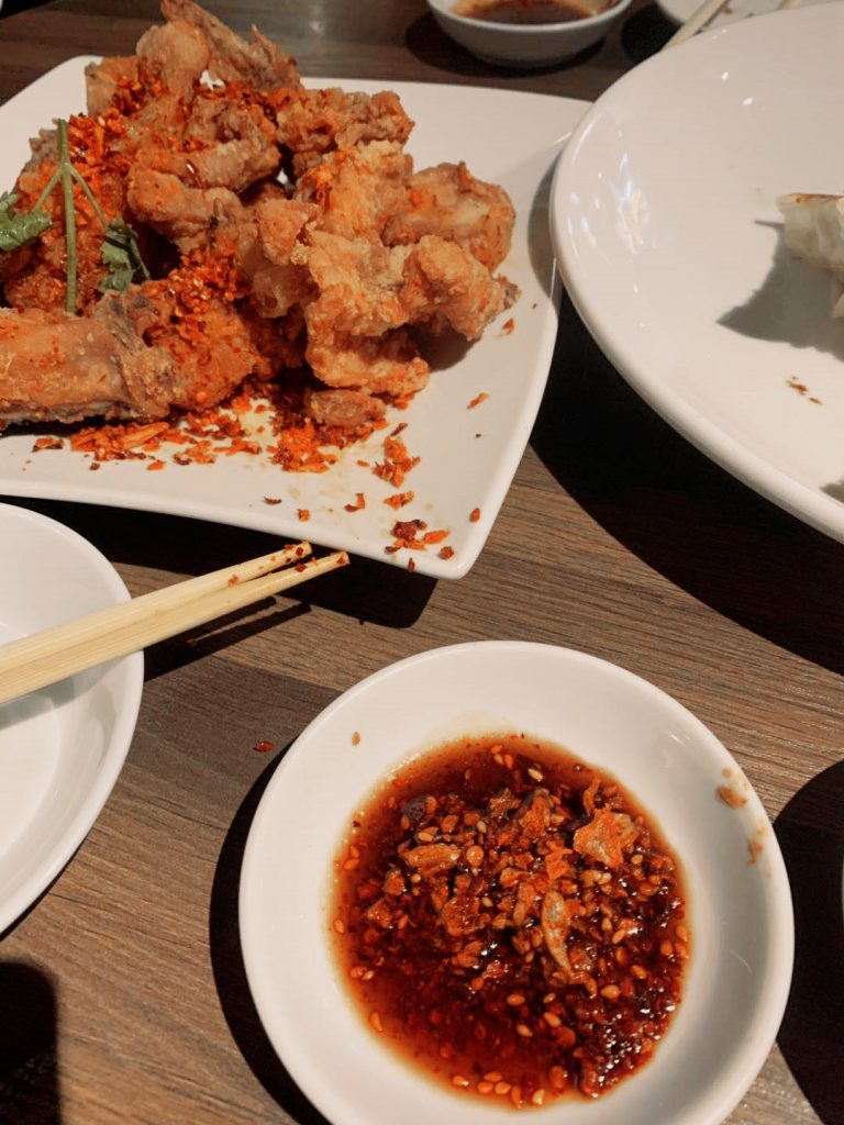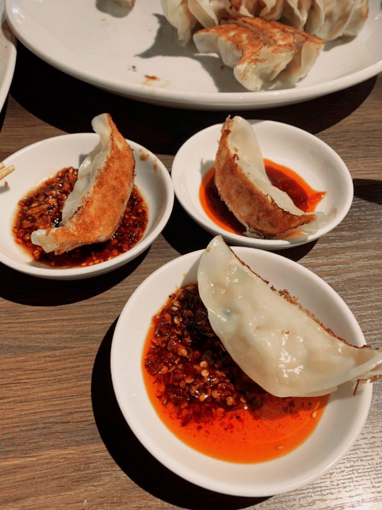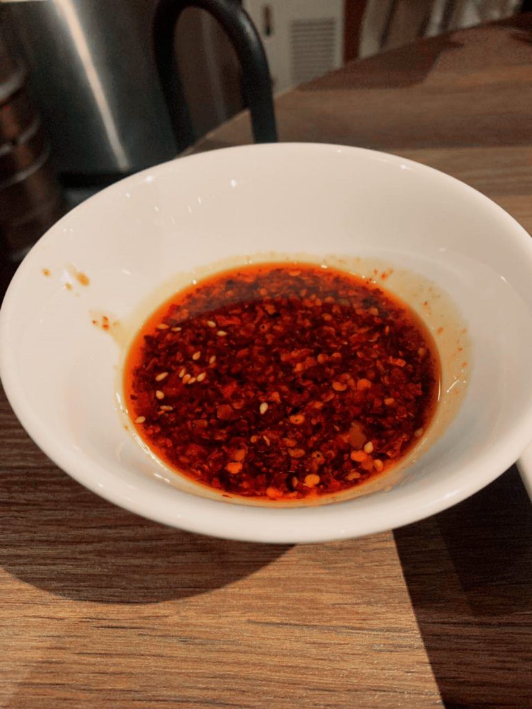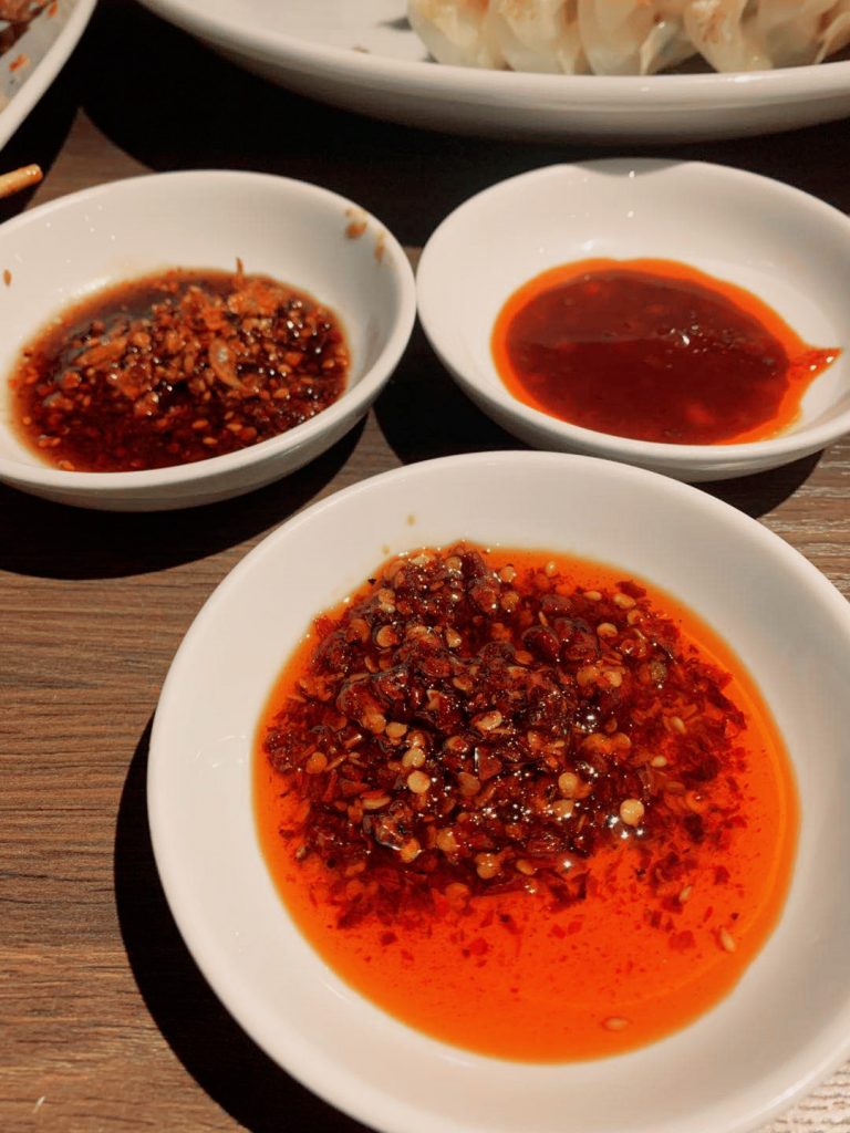 餃子をつけると、油衣が揚げ餃子のパリパリの皮にしみついて、更にパリパリ感を上げていきます。