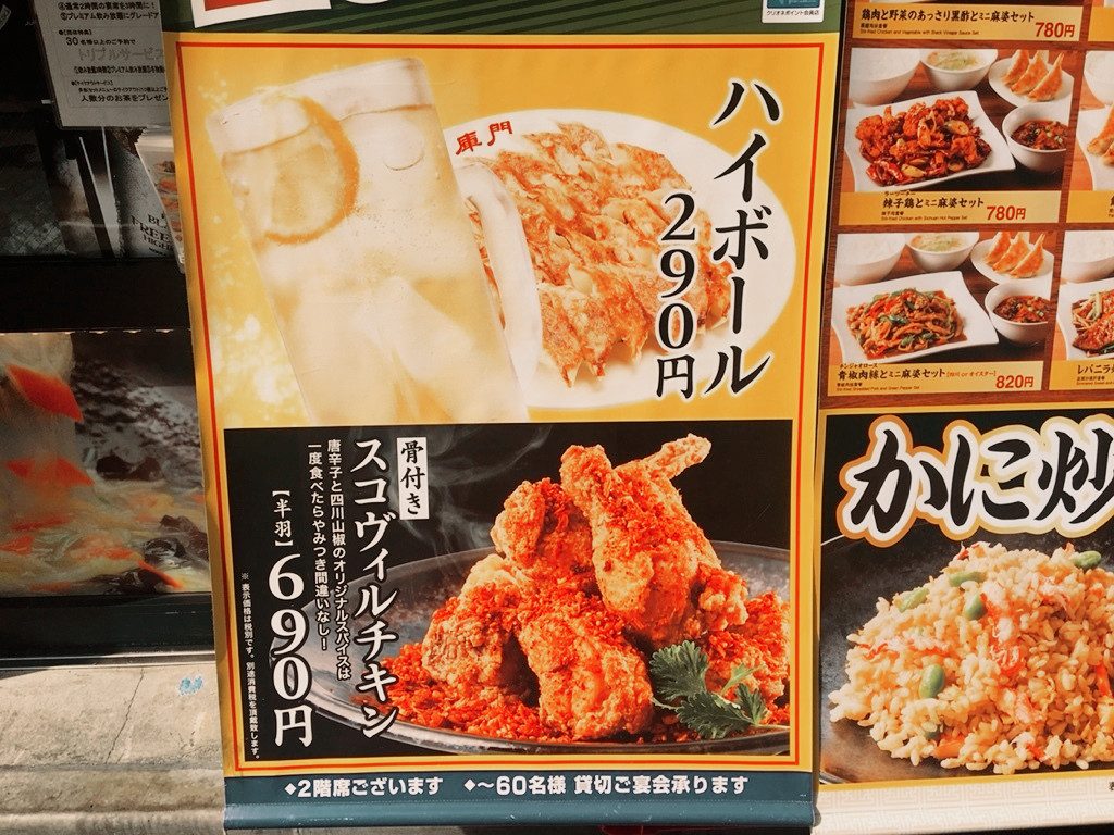 看板メニューにもなってる「石庫門流餃子」と「スコヴィルチキン」、しかもその破格な金額が気になり、仲間を連れて行きました。