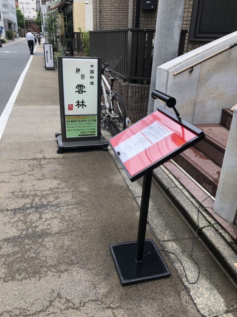 今回の訪問もちょうどお昼時だったせいか、お店の看板の前でサラリーマン二人組が「ランチどうする?」会議をしていました(笑)