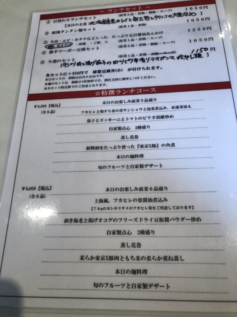今回は四川がテーマということもあり、ランチセットから編集長おすすめの麻辣担々麺セットをチョイス。担々麺に、日替わりのおつけものとお総菜1品がついて1050円なり。他、麻婆豆腐セットや日替わりランチなどもあり、正直迷います……。なお、四川料理専門店ではないので、辛くない料理もあります!