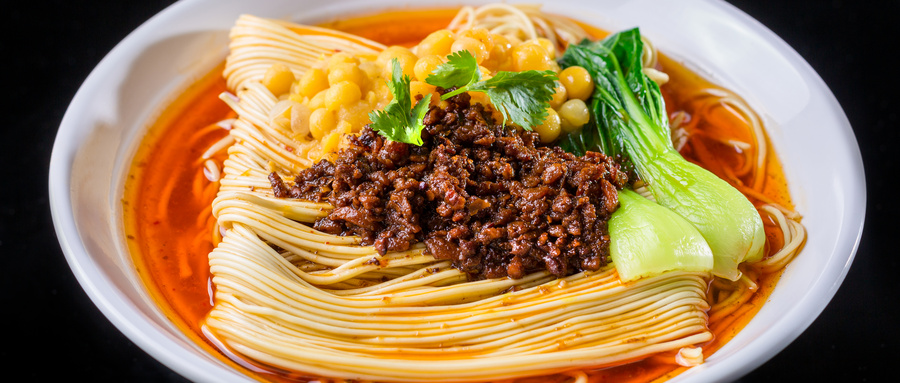 担々麺は四川省成都と自貢発祥の有名な伝統的麺料理である。名前の由来は当時運搬人が天秤棒を担いで麺を売ることで、天秤棒は四川方言では「担担」と呼ばれるからである。
